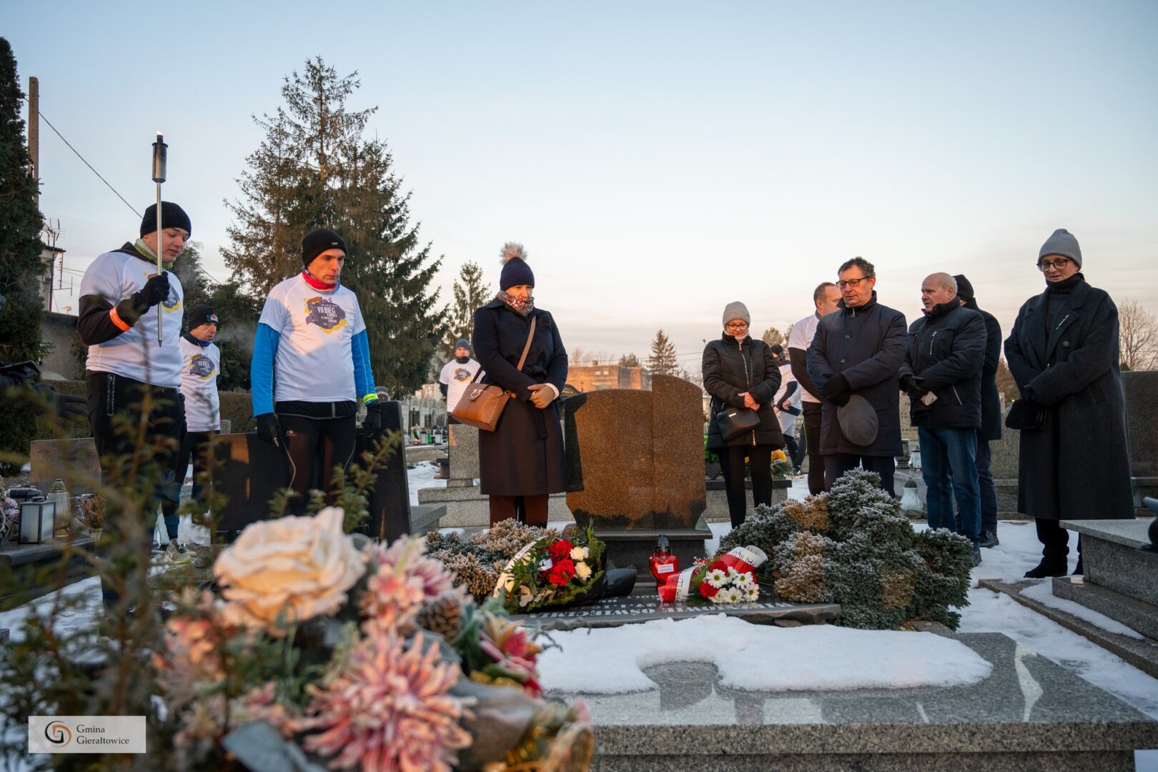 Poranne uroczystości rozpoczęły się na cmentarzu w Przyszowicach, gdzie odbyło się symboliczne przekazanie Światła Pokoju. W wydarzeniu uczestniczyli:
