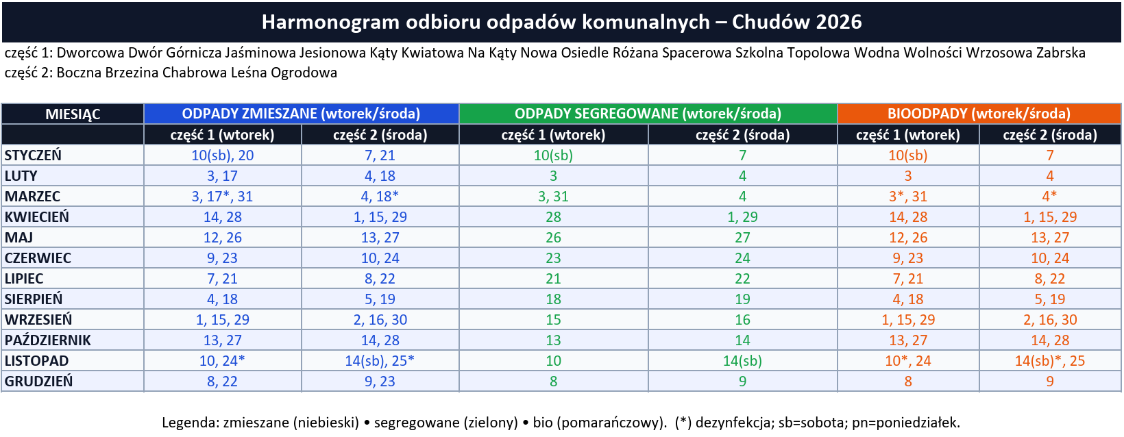 Harmonogramy odbioru odpadów komunalnych w Chudowie, Gierałtowicach, Paniówkach i Przyszowicach w 2026 r.