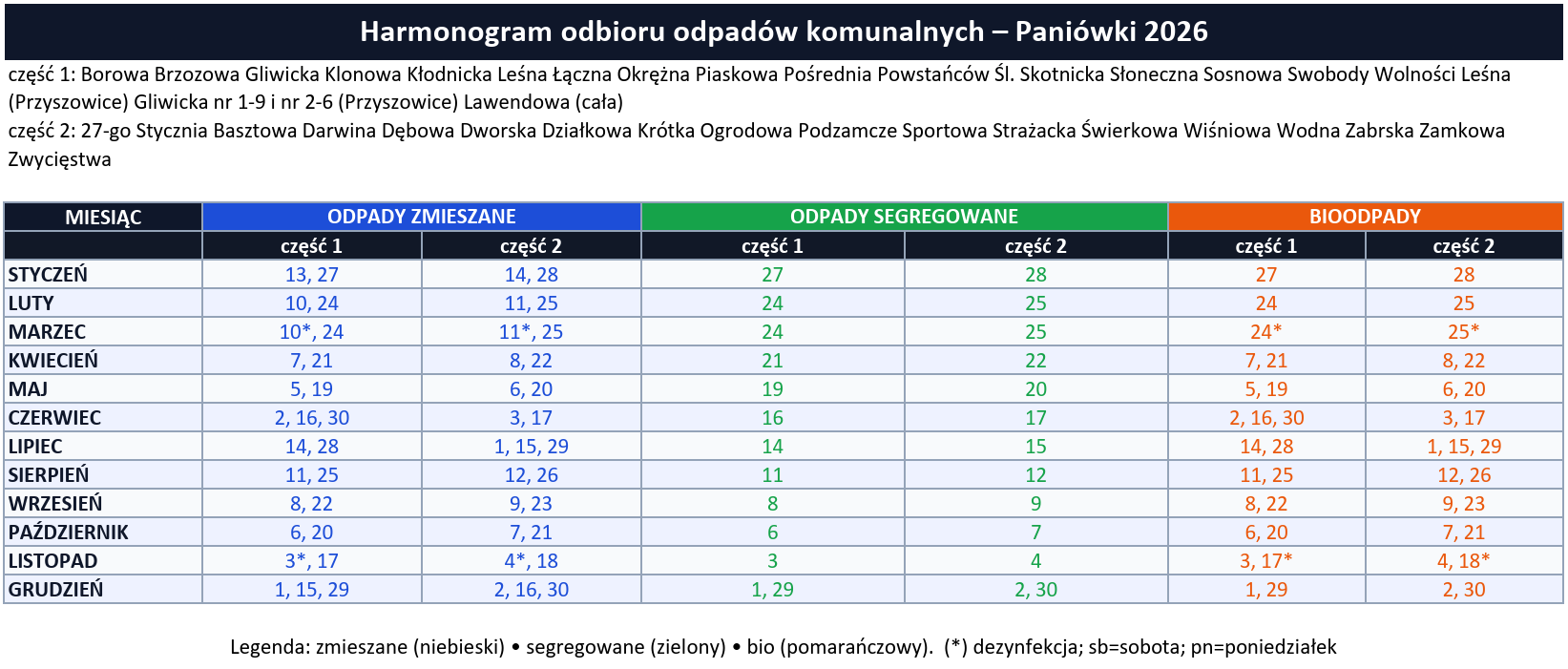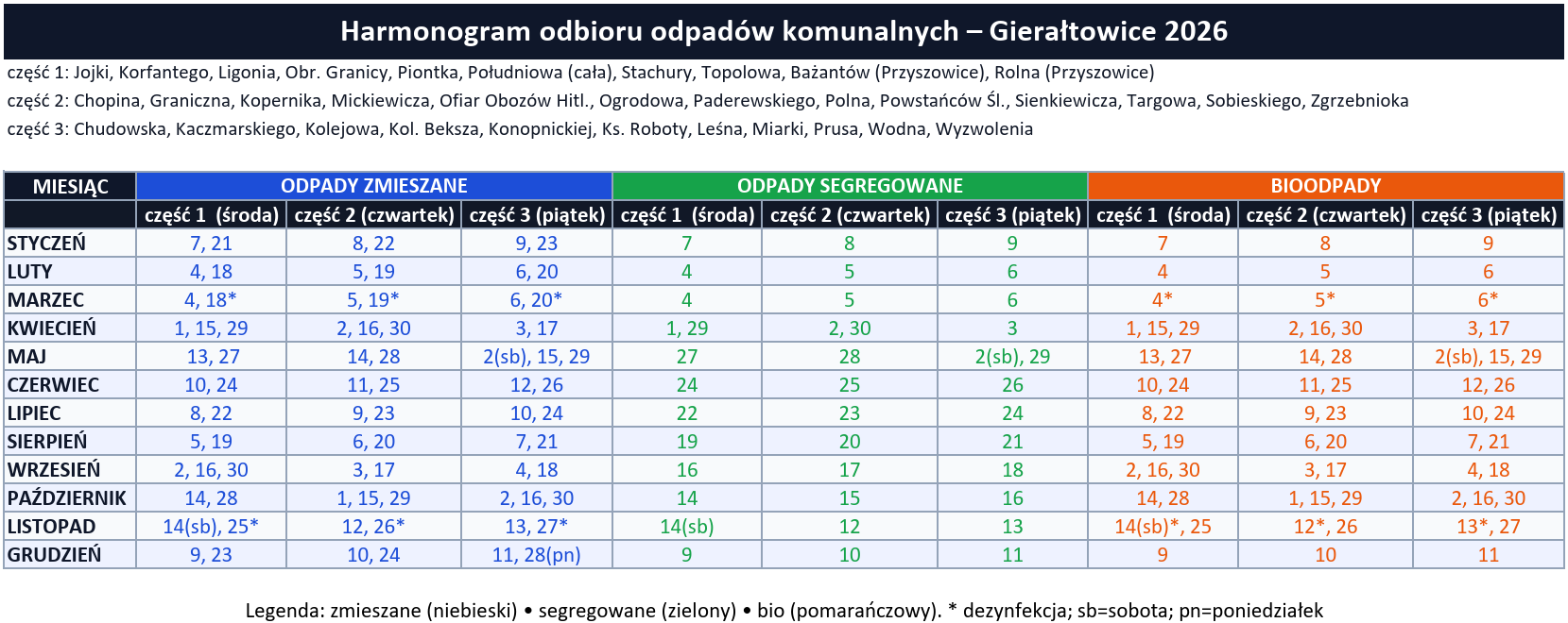 Harmonogram odbioru odpadów komunalnych w 2026 roku w Gminie Gierałtowice