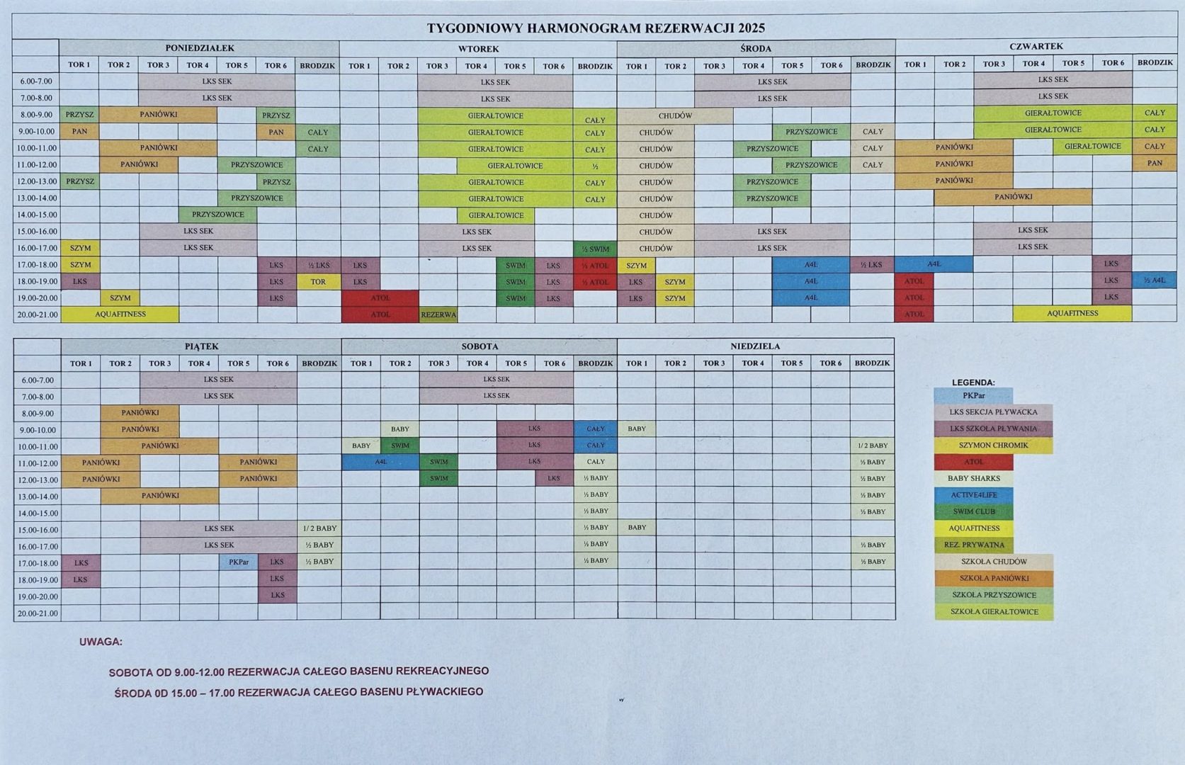 Harmonogram rezerwacji basenu w pływalni Wodnik