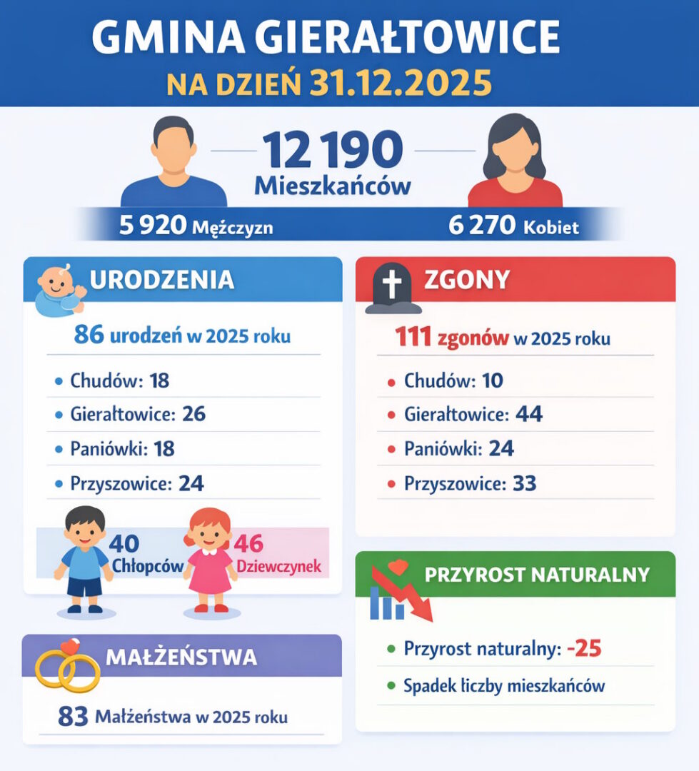 Sytuacja demograficzna Gminy Gierałtowice w 2025 roku