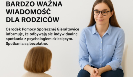 WięcejOrganizator: Ośrodek Pomocy Społecznej w Gierałtowicach Zakres pomocy: Przebieg spotkań: Ważne informacje: