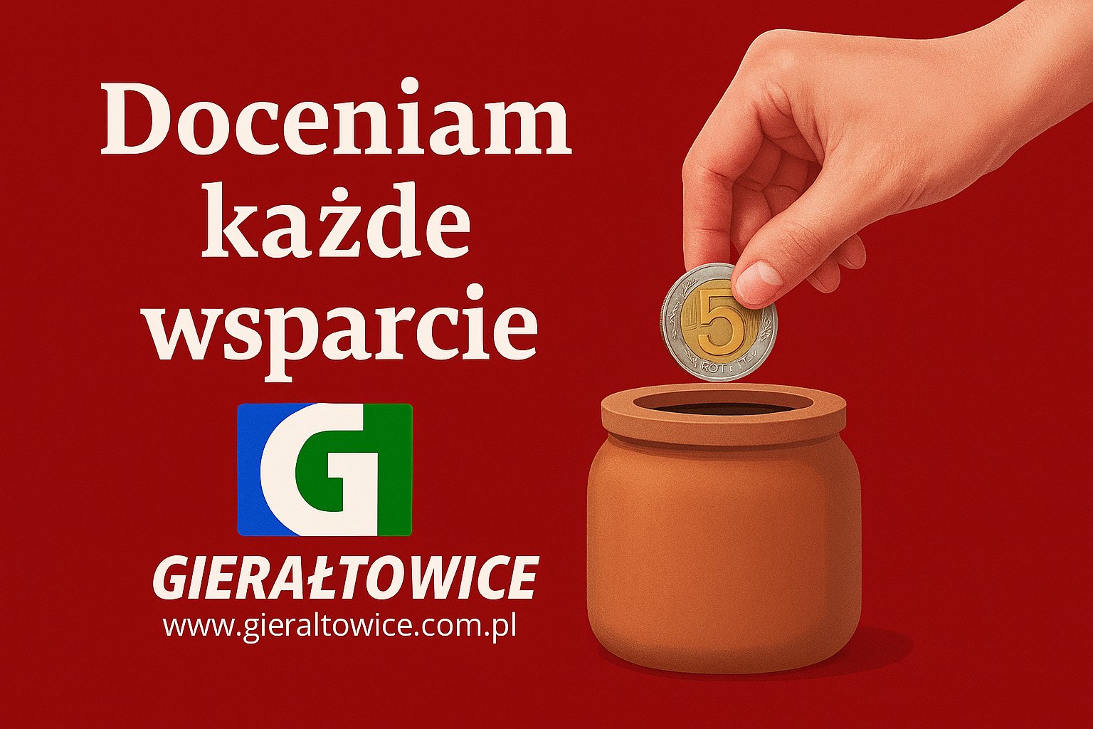 Serwis powstaje z pasji do lokalnych spraw i chęci budowania wspólnej przestrzeni informacyjnej – wszystkie treści na Gieraltowice.com.pl są dostępne bez opłat dla czytelników. Aby portal mógł dalej funkcjonować i się rozwijać, potrzebne jest jednak wsparcie finansowe na pokrycie kosztów hostingu, utrzymania domeny oraz bieżących prac technicznych.